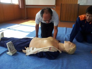 《以前は心臓マッサージと呼んでおりましたが、最近は胸骨圧迫と・・・》