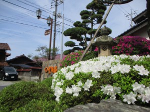 今の時期、望湖楼の玄関前にはサツキやツツジが