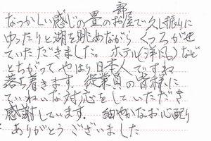 ゆっくりお過ごし頂けたご様子を伺い、当館ならではの湖上の癒し雰囲気も